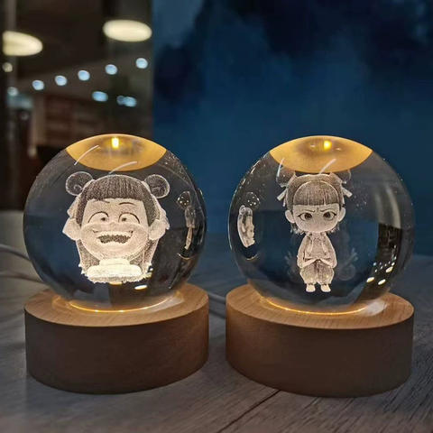 Kristal top gezegen küre 3D lazer kazınmış güneş sistemi topu dokunmatik anahtarı LED ışık tabanı ile